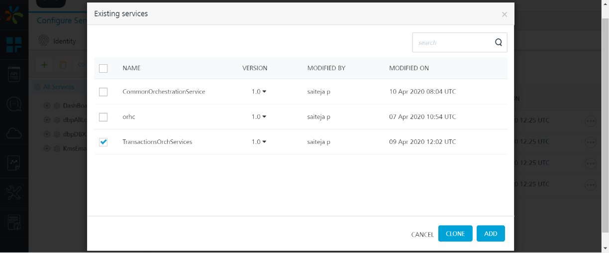 If even after importing the Holdings Fabric app the TransactionsOrchService is not present in your environment, you must create a new orchestration service. To create a new orchestration service, follow these steps