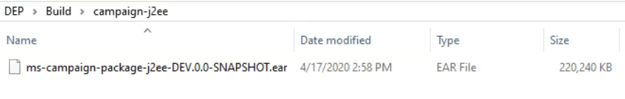 This section provides an insight on the folder structure of Campaign J2EE package and the deployment artefacts. Campaign Microservices for J2EE deployment is available as single release bundle, which is ms-campaign-package-j2ee-DEV.0.0-SNAPSHOT.