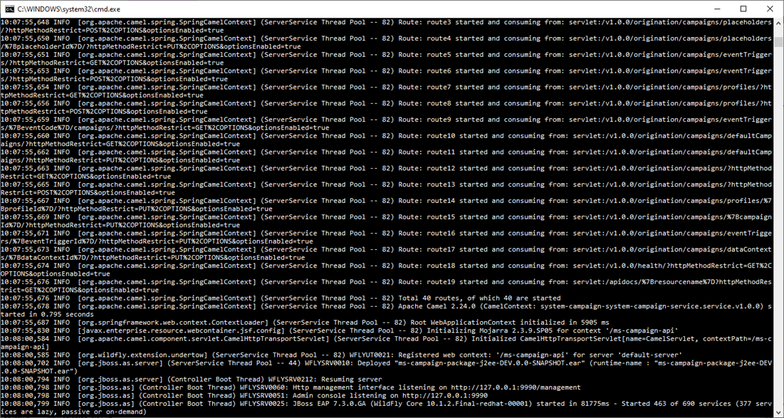 - Check the JBoss console to ensure the successful deployment of the package.