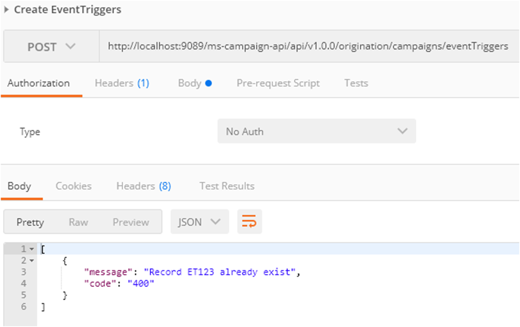 - You can now launch the API URLs in postman and verify the responses. The following screen capture shows the sample request and response.