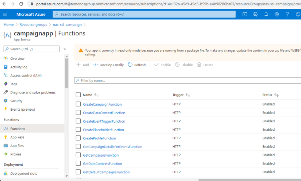 Once the installation is done, the functions are created in Azure.