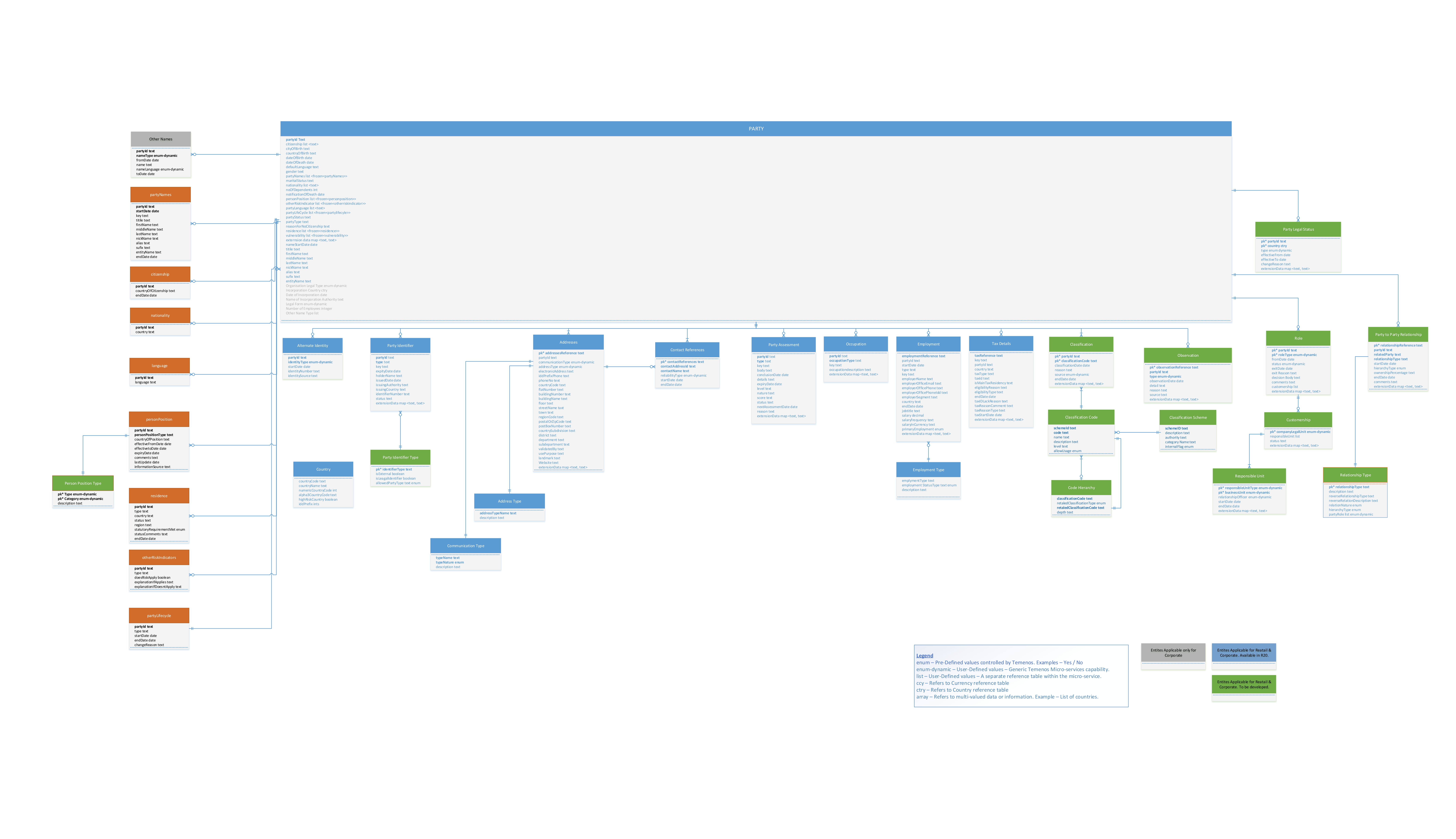 To view the NoSQL data model of Party microservice and different entities associated with it, click here.