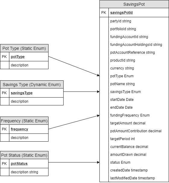 Here, the funds of the savings pot remain within the main account and it is not included in the available balance of the main account. The money is reserved to a separate virtual account, that is logically tagged with the different types of Savings Pot.
