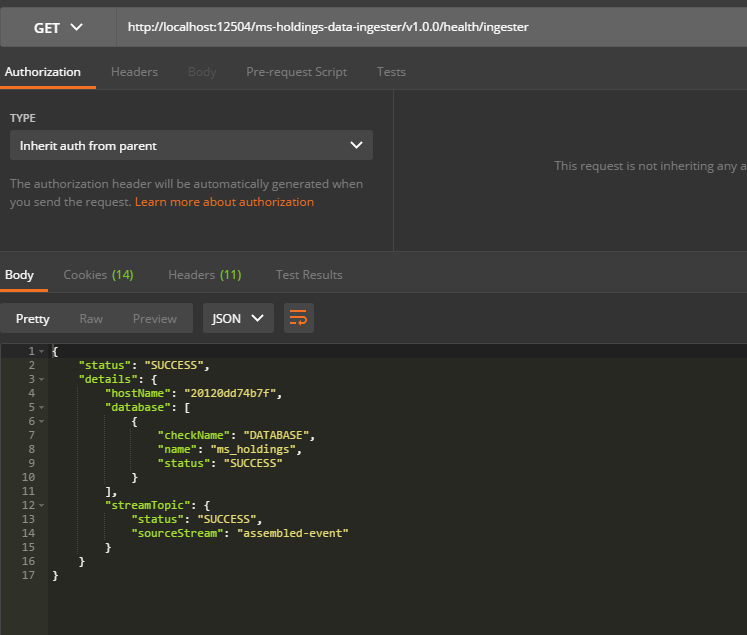Holdings microservices expose ingester health check endpoint to monitor the health of ingester to consume and process incoming messages from Kafka or kinesis topic.