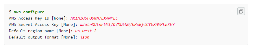 - Once the CLI is installed, now configure the AWS key, AWS secret and default region of the account the services have to deployed. Use following command.