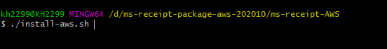 - Open bash terminal at the installed location where install-aws.sh can be found.