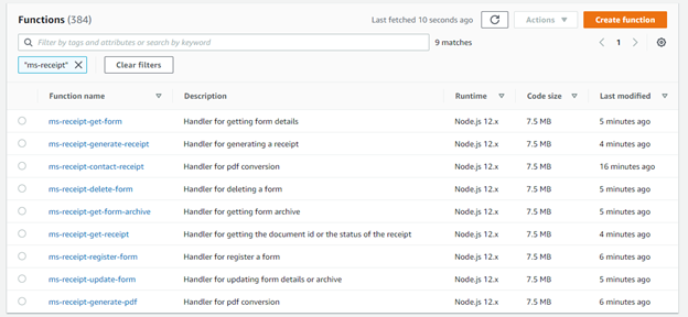The Receipt Microservice for AWS deployment is available as a single release bundle. For example ms-receipt-package-aws-<RELEASE_NUMBER>.zip.