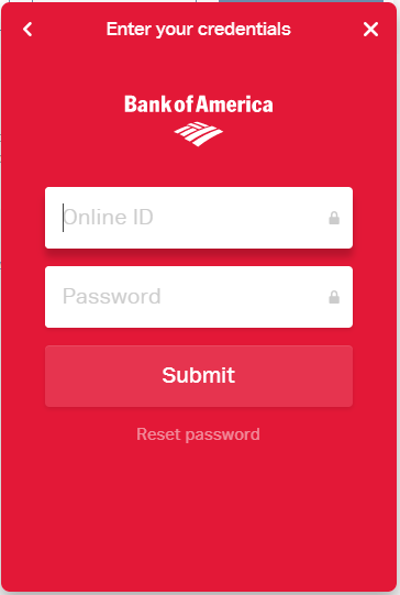 - Search for your bank and select it. The Enter your credentials tab appears.