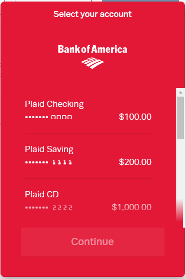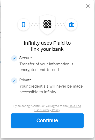 Fund with external accounts automatically: Plaid integration is used to connect to your external bank accounts.- When you select this option, the following tab appears.