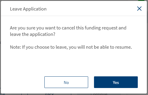 - If you want to quit the funding process, click Leave. The Leave Application tab appears.