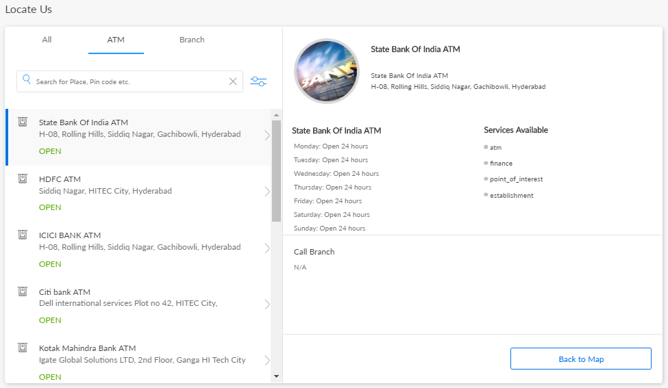 Use the feature to view the required ATM/branch details.