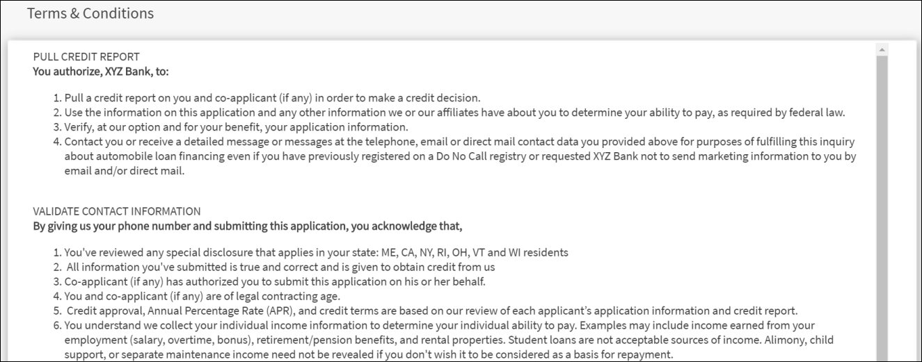 The user will not be allowed to use the banking application without accepting the terms and conditions. The acceptance details are saved in the Spotlight (Customer 360) DB.