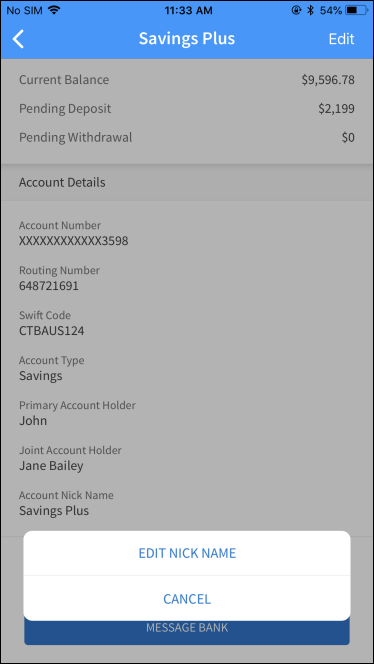 - Edit the nickname and Tap Save. The change will be reflected across all devices wherever the account name is displayed.