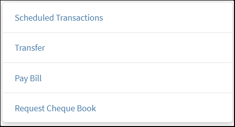 A one-stop section that contains logically grouped actions that you can perform from here. The actions change based on the selected account type. A few such actions are Scheduled Transactions, Pay Bill, and Transfer.