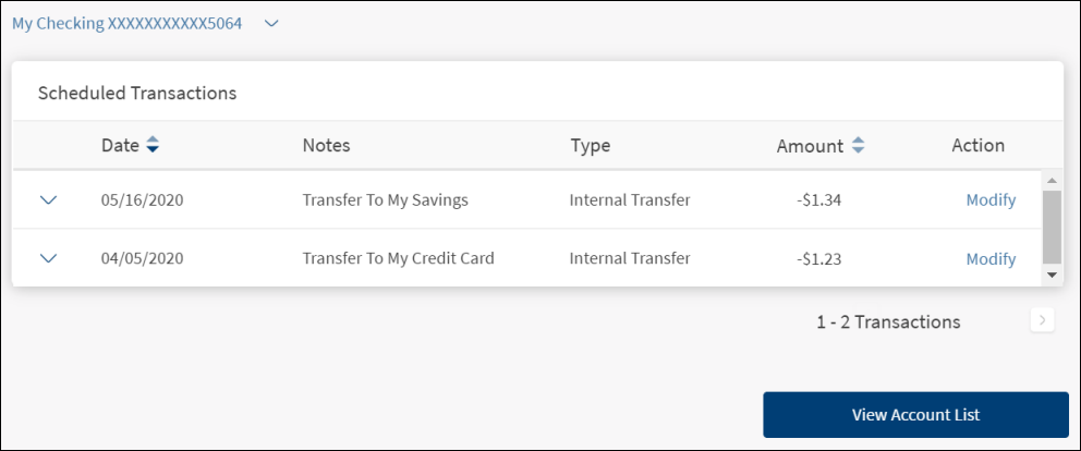 - Click View Account List to go back to Account Details and Transactions screen.
