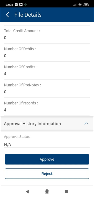 View the list of ACH files pending for your approval or rejection. The application lists only those files that have been explicitly sent to you for approval.