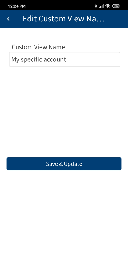 - Edit custom view name. The new name will replace the old one. There is an indication to let the user know if a valid name has been entered. Tap Save & Update. The button is enabled only if any modification is done on the screen. The application displays an acknowledgment screen.