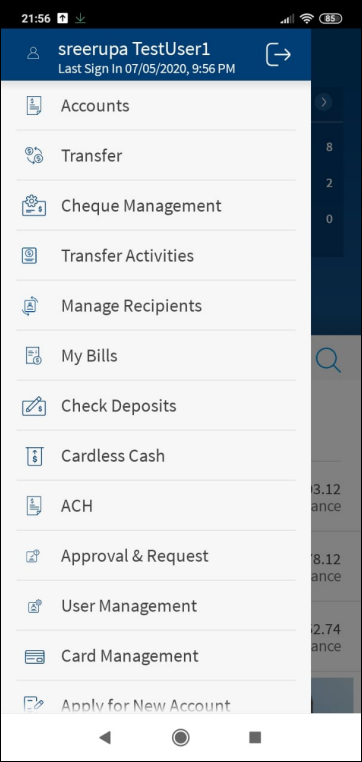 Mobile Banking Menu