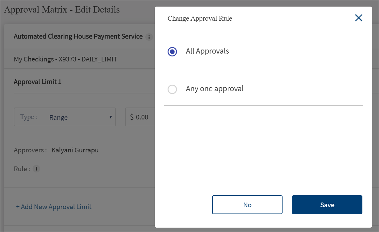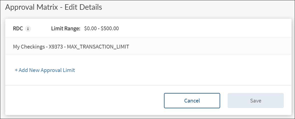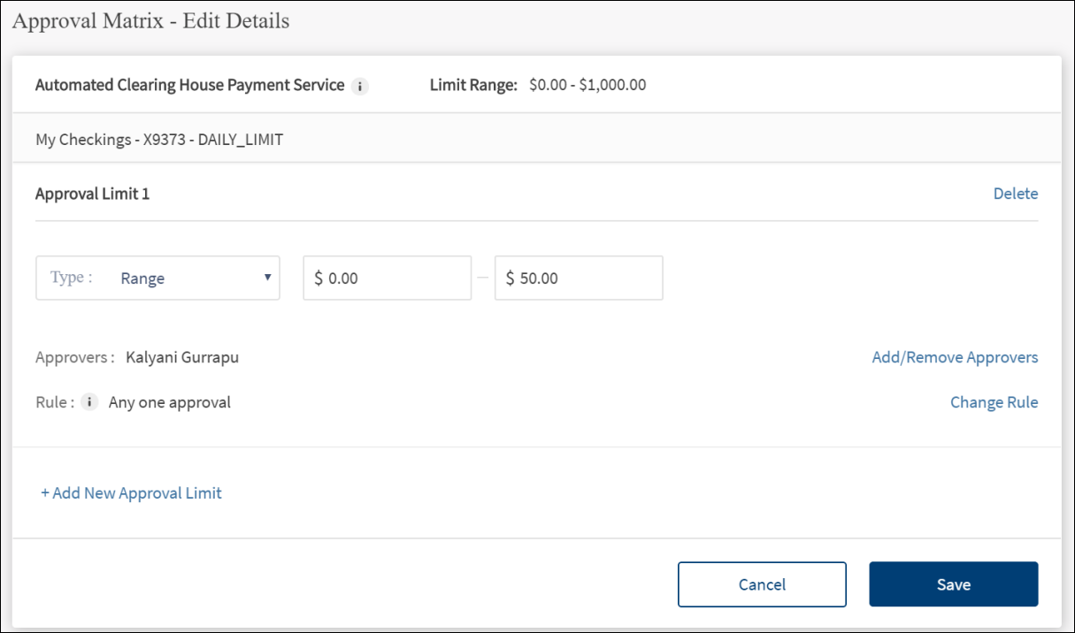 - Click Add New Approval Limit to add another limit.