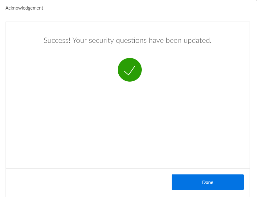 - On successful update of your security questions, the app displays the Acknowledgment screen with an appropriate message.