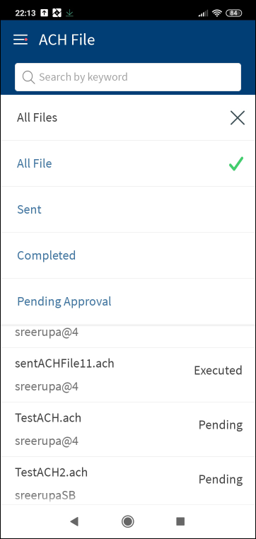Tap any file to view file details and take further appropriate action depending on the status of the file. Search the list of files to find a certain file to action further. To search any file, enter the file name or the request type.