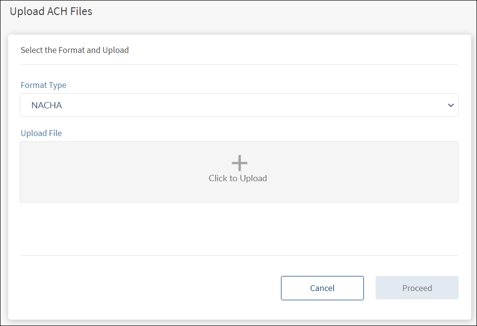 - Select the Format Type from the list. Only NACHA format is accepted.