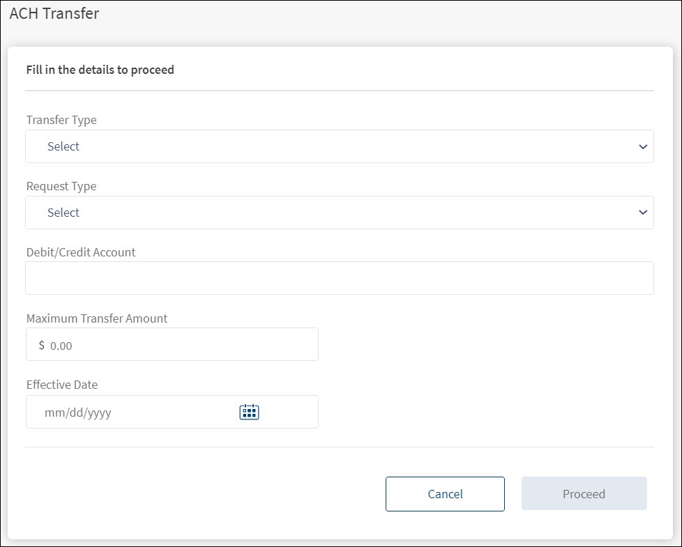 To create a transaction without using an existing ACH template, follow these steps. All fields are mandatory: