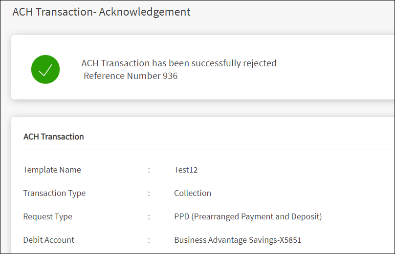 - Only the users with permission to approve ACH transactions can approve or reject transactions.