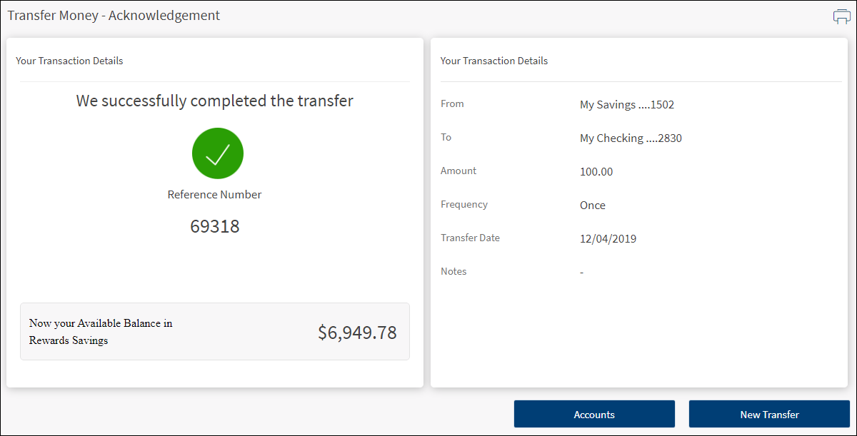 - Print the transfer acknowledgment