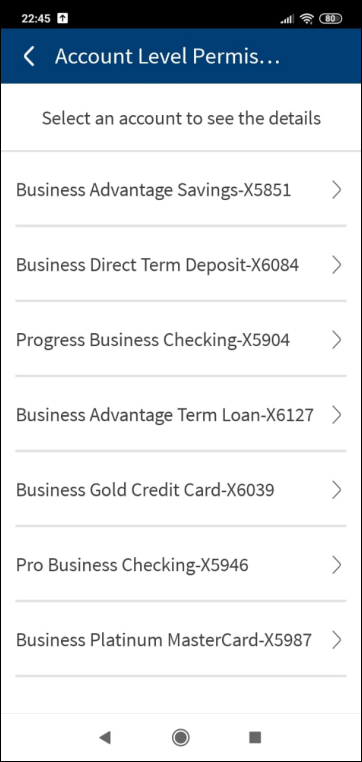The feature is available to only those users who are given explicit permission to manage business users. The business users can access the permitted business accounts in the banking application and perform the activities based on the permissions (access to features and actions) given to the business user. See Permissions for more information.