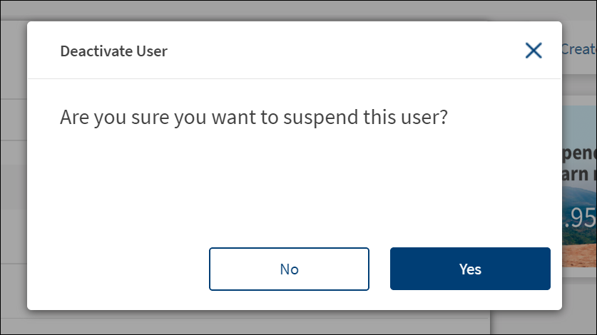 | Activate/Suspend Users | Single action is associated with permission for activating and deactivating a user. |