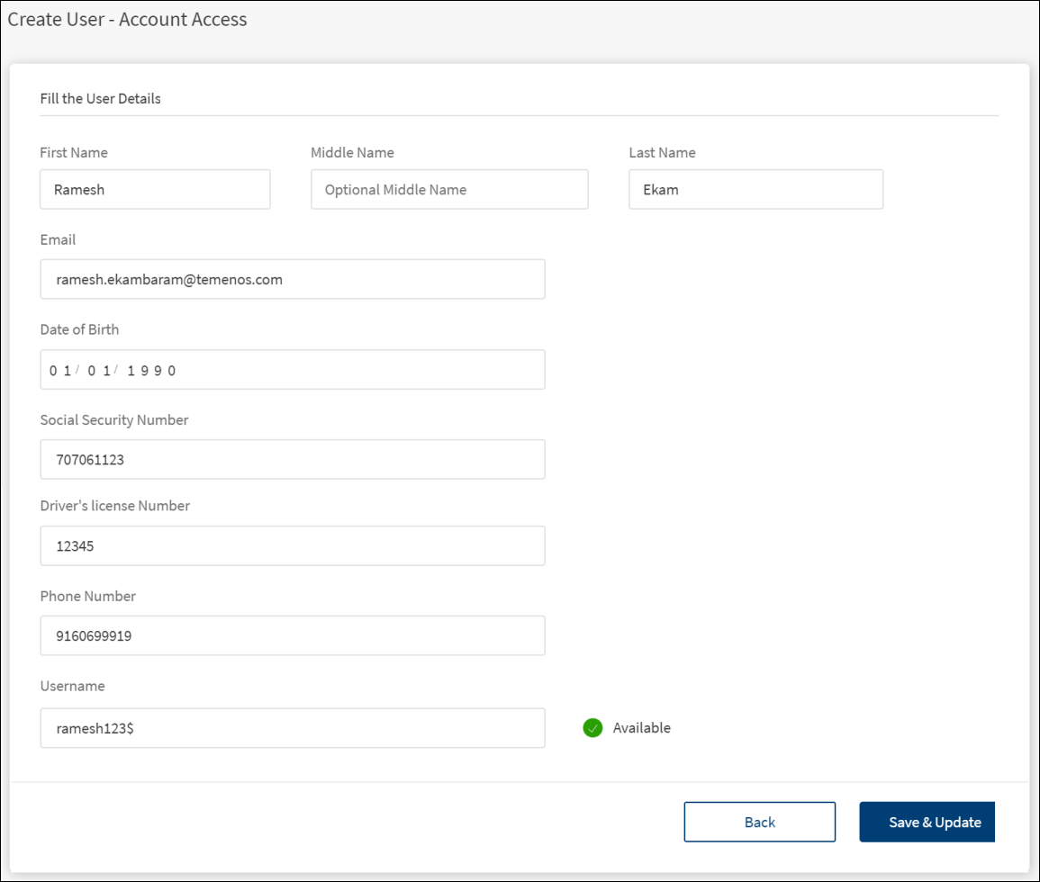 Displays the user details. Make the changes and click Save & Update. The changes are updated.