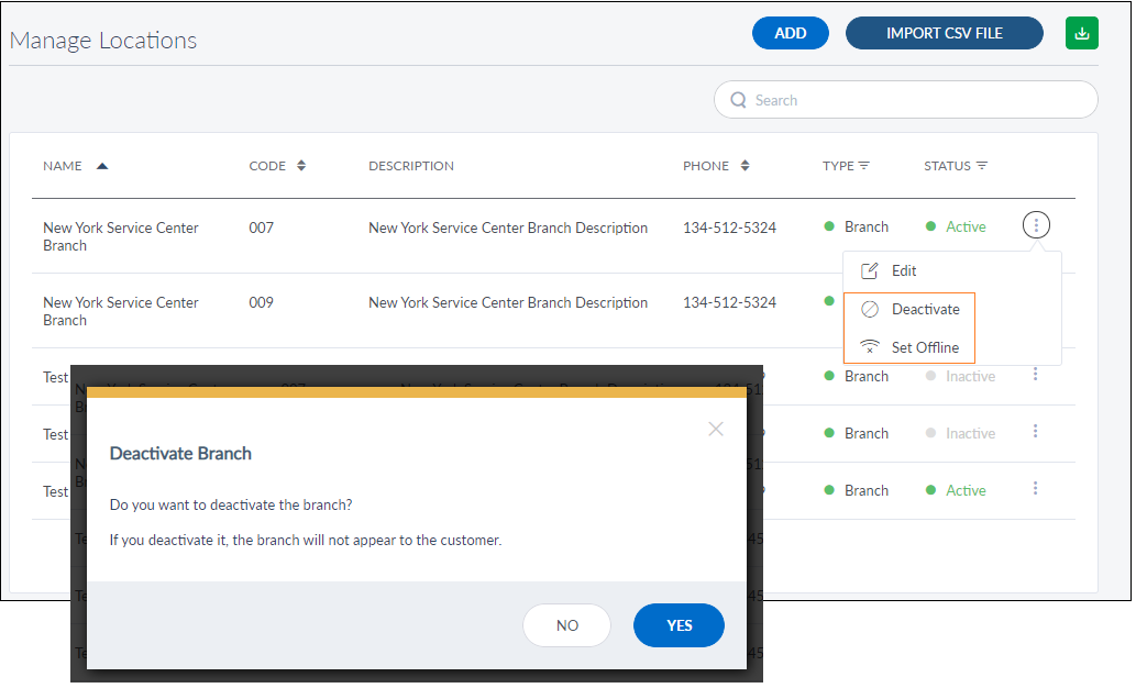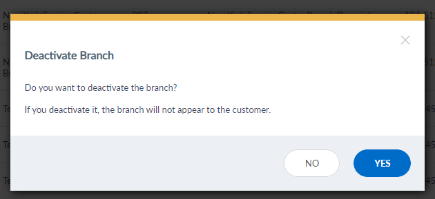 - Deactivate: The branch or ATM will not appear in the list for the customer.