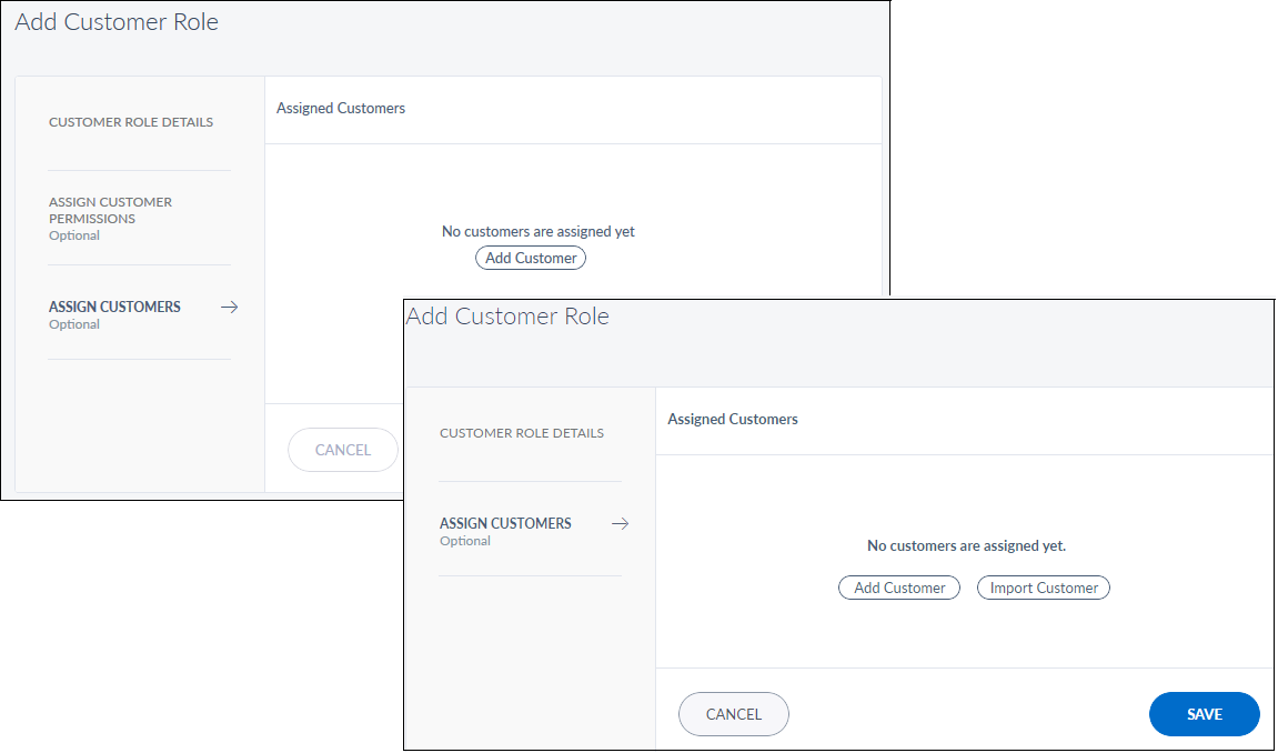 NOTE: Adding multiple customers by importing a CSV file option is available for the Campaign role type only.