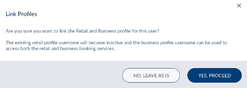 • Click De-Link Profiles, an appropriate confirmation message is displayed. If you choose to proceed, a new profile will be created for Retail use and the existing profile will be converted into a business profile.