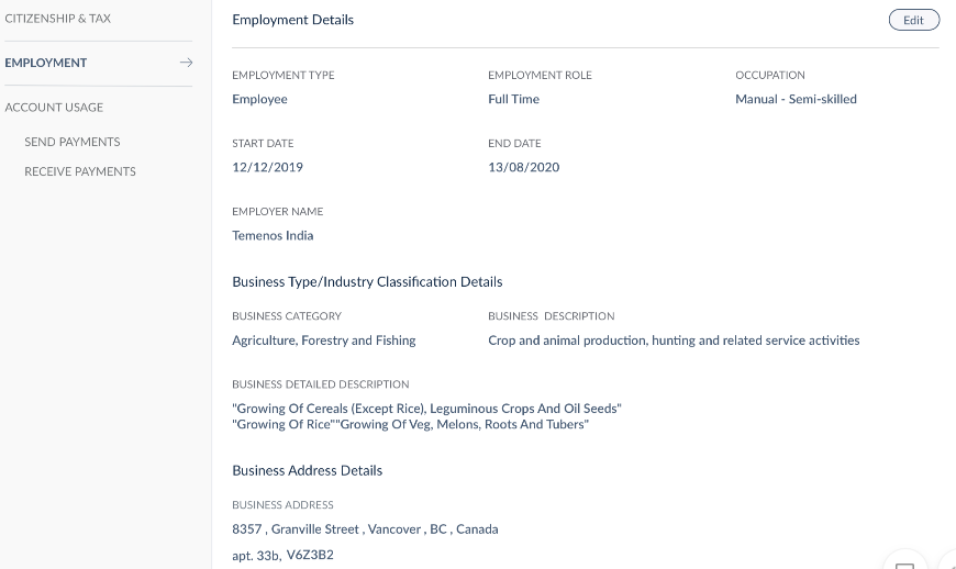 Once the profiles are linked, the General Information section will have the details about both Retail and Business profiles of the customer. This user will be tagged as both a retail and a business user.