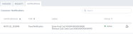 The notifications tab displays a customer's history. The list is represented as rows with the following details: