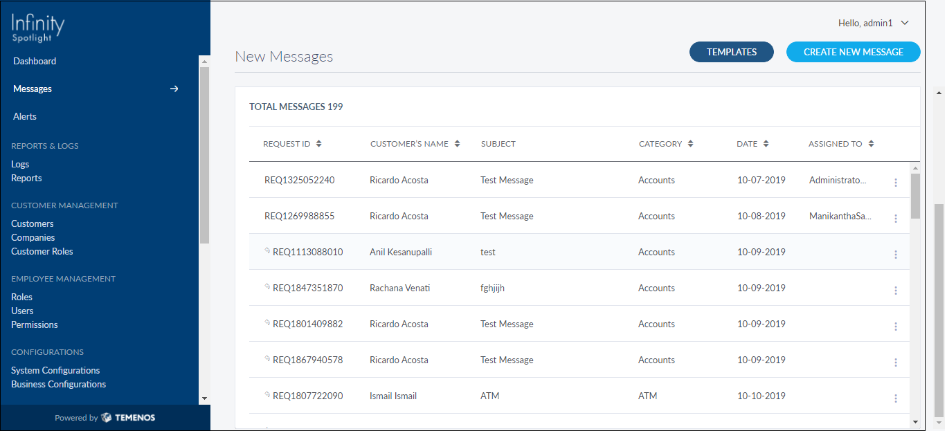 To ensure brand uniformity in all communications from the banks or credit unions, the Spotlight application allows admin users, with specific permissions to create Message Templates. These templates are auto-inserted in the message body when selected with the right layout and message body. The CSR only has to update certain parts of the message that are relevant to the context and send them out.