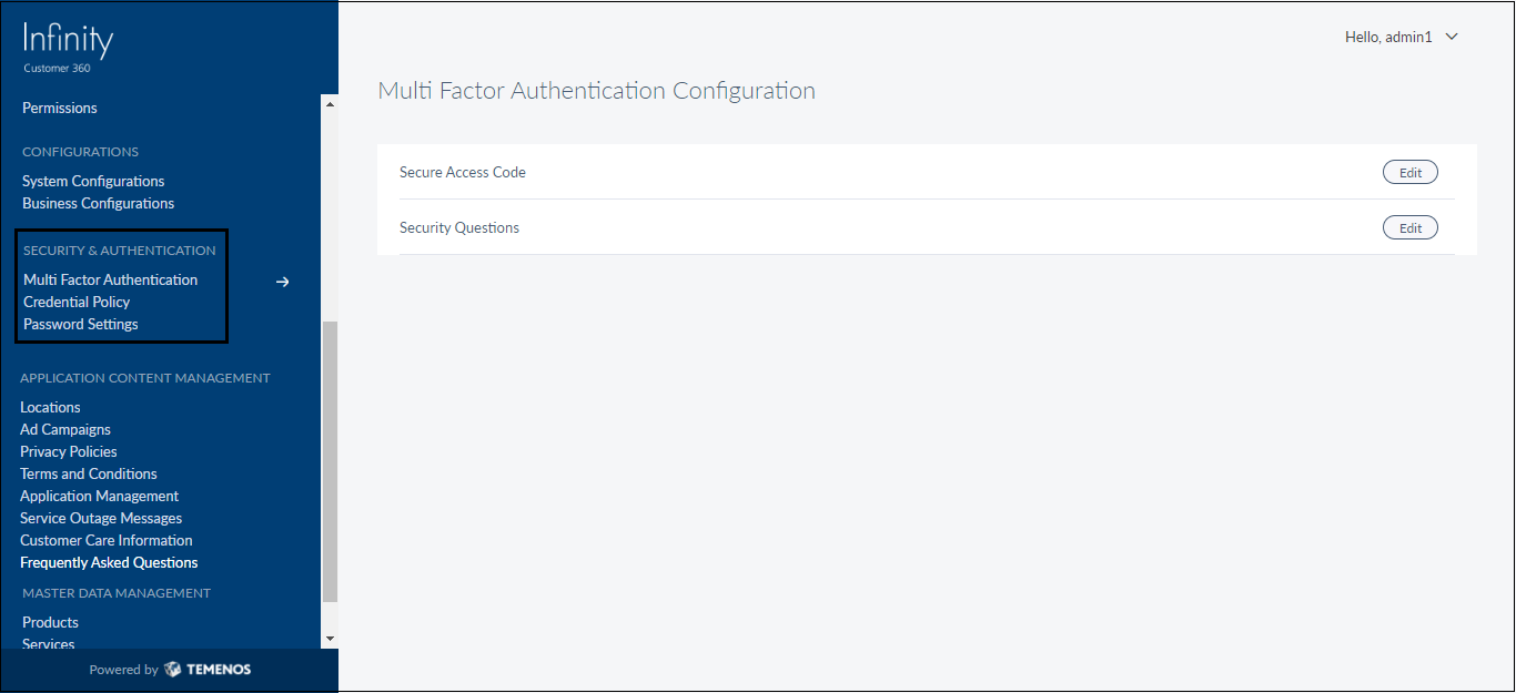 Multi factor authentication (MFA) is a secure process of authentication which requires more than one authentication techniques chosen from independent categories of credentials. MFA combines two or more types of authentication to provide better and secure way of authenticating Infinity users. Typically, the most common types of authentication factors are: