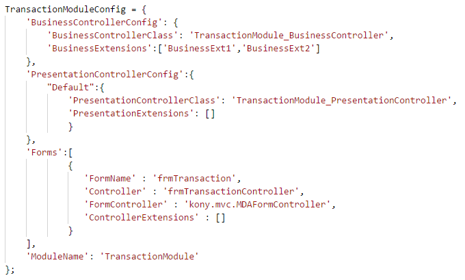 - The Transaction Module uses the Business Controller as a delegator pattern. Unlike the Business Controller as a Command Pattern which has Command Handler/Command Handler Extensions key-values, the Business Controller as a delegator has Business Controller Class and Business Extensions key-value mentioned in the module config.