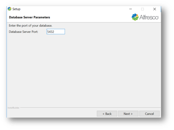 - Click on the Next button and the Database Server Parameters screen is displayed.