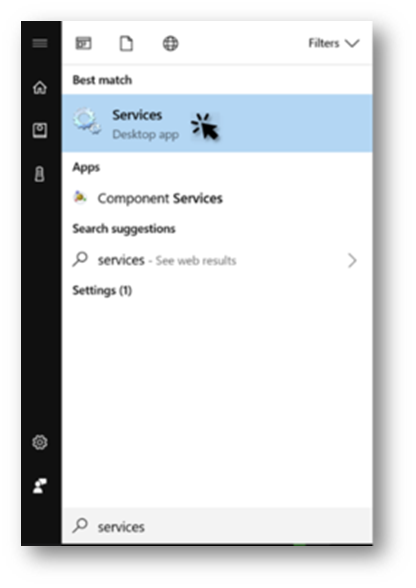 - Click on the Start button and search for Services. The Services screen is displayed.