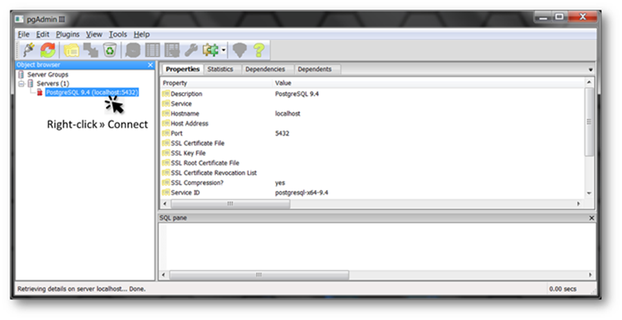 - Double click on the pgAdmin3.exe file. The pgAdmin III screen is displayed.