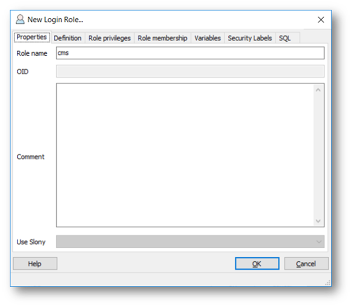 - Click on the OK button to close the New Login Role dialog.
