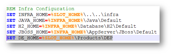 - Open T24Service and add the DEP folder home location: set DE_HOME=%SLOT_HOME%\Products\DEP