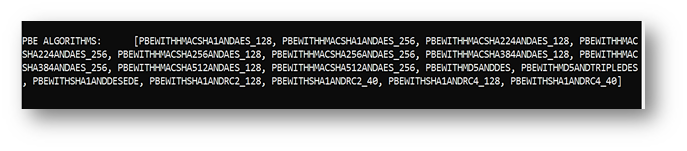 - < Algorithm name>: Algorithm used to encrypt the data. The supported algorithms are shown below.