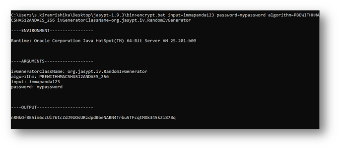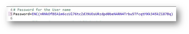- Copy the encrypted password output and place it in the configuration.properties as Password = ENC (encrypted_password).