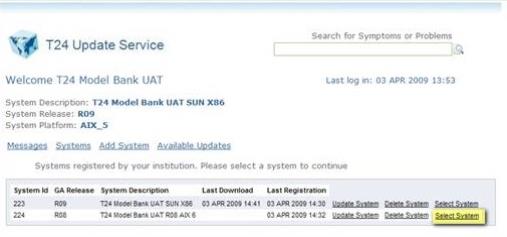 - Click Add a GA Release R08 and below (Temenos Transact Service Packs) to register a pre-R09 system.