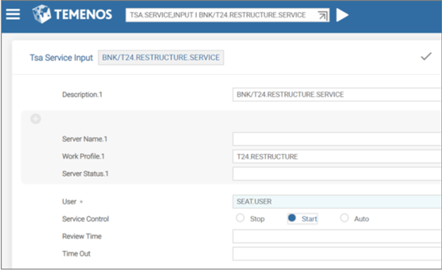 - In T24.RESTRUCTURE.SERVICE, you need to set Service Control to Start. This starts the restructure process.