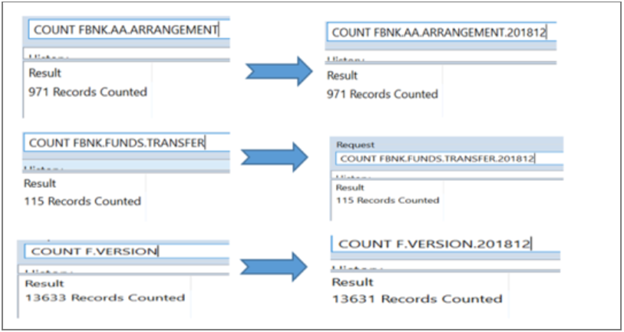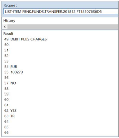 From the below screen, you can see that line number 62 is updated as YES in the FBNK.FUNDS.TRANSFER.201812 temporary table. This is a data record view directly from Database through TAFJ JQL-SQL-OFS window. In this stage temporary table name is not yet renamed to actual table name.